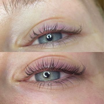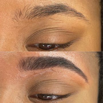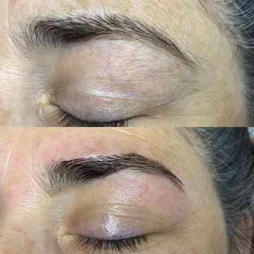 Brow lamination tames unruly hairs and is great for creating a new uniformed shape.